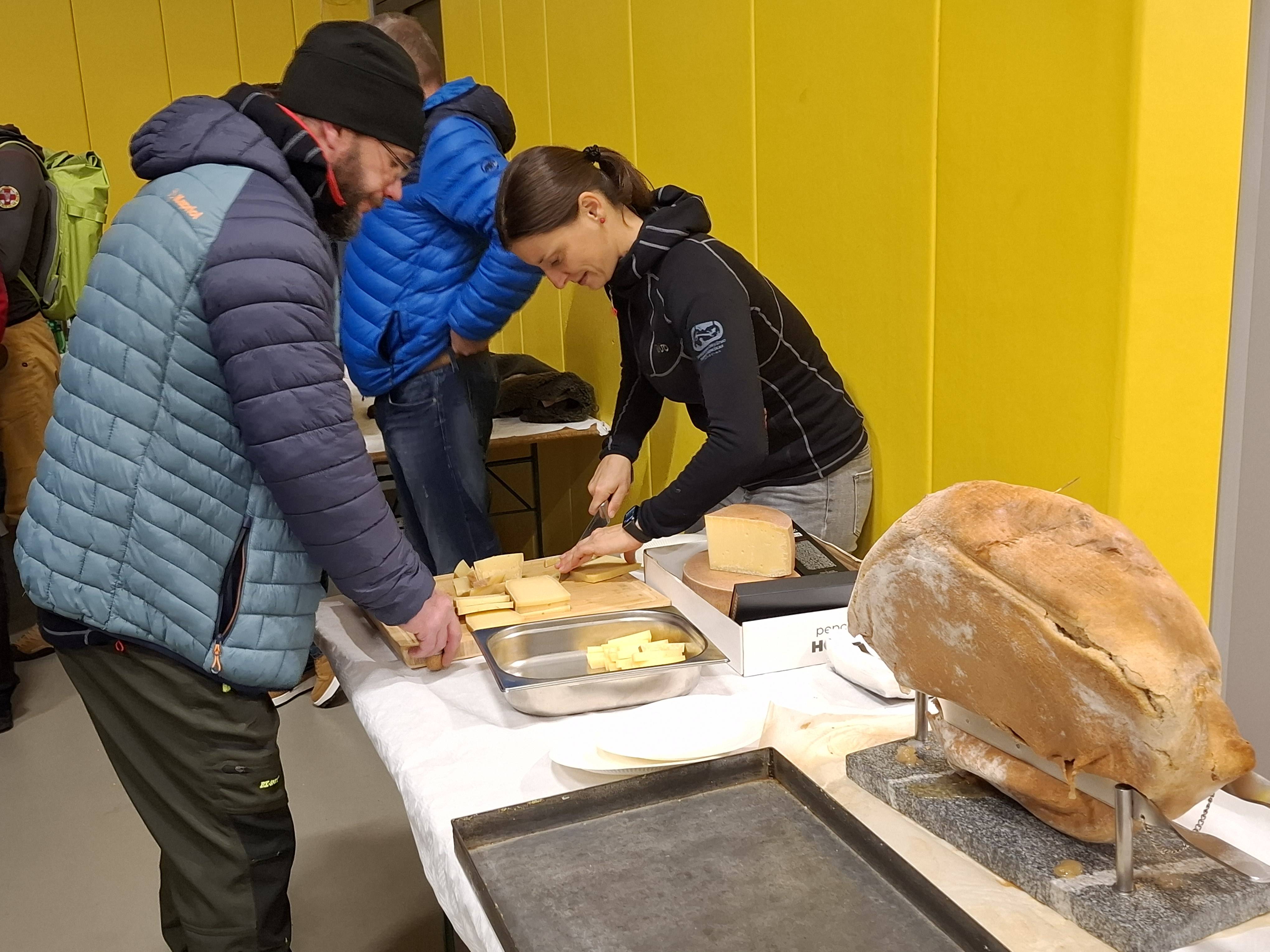 Ob 8h zjutraj smo se vse ekipe, ki smo se tega dne odločile za obleganje gore, zbrale na jutranji kavi in pripravile strateški plan. V prvo bojno linijo so šli tisti, katerih avtomobili so vsaj malo dišali po »terenskem vozilu«. Ti so bili kot nekakšna glava družine – kar so rekli, smo naredili, da le ne bi bilo treba nosit opreme v hrib. Ostali smo parkirali na zadnjem ovinku nad B-postajo ustavljene kaninske žičnice, do koder se je še mogoče normalno pripeljat. Tam se nam je pridružila tudi ekipa ukrajinskih jamarjev. Po kakšnih sedmih vožnjah ljudi in opreme s terenci smo vse skupaj preložili še na tovorno žičnico in prepeljali do koče. No, vmes smo vse bolj nestrpno pogledovali v nebo, ki je bilo vedno bolj kislih, temnih barv. Poleg moke in kruha v škatlah nas je malo skrbelo tudi za ekipo (Tjaša, Klemen, Jure, Yuri), ki naj bi se zvečer po nekaj dneh vrnila z ekspedicije v Skalarjevo brezno. K sreči je bil strah odveč. Kljub dežju so relativno suhi prišli ven, nekateri v večernih urah, drugi pa v zgodnjih jutranjih.